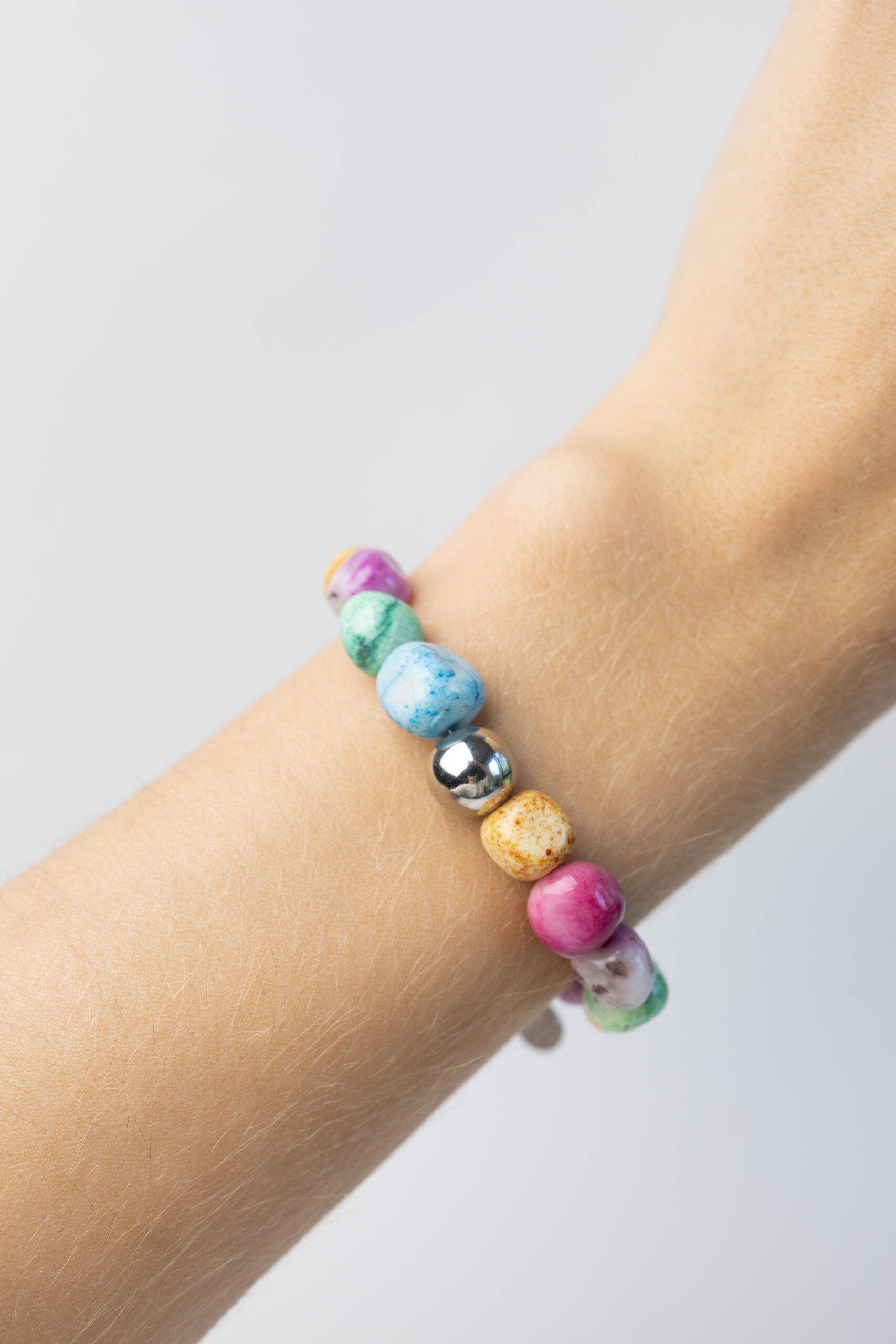A cheerful and striking bracelet made of colorful agates combined with steel beads. The vibrant stones bring lightness and energy, while the cool shine of steel adds a modern touch. Perfect for everyday wear, highlighting the wearer’s unique style.