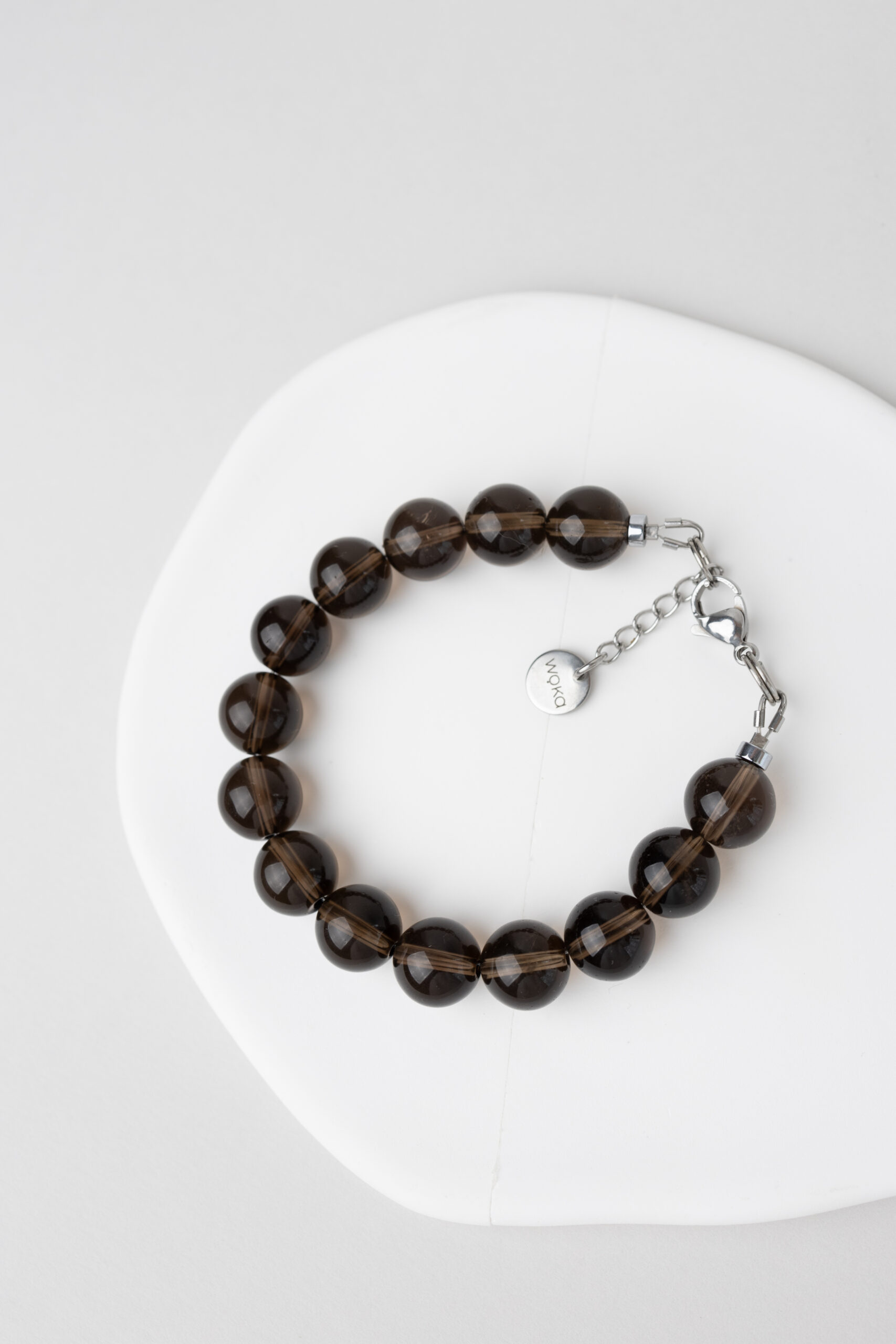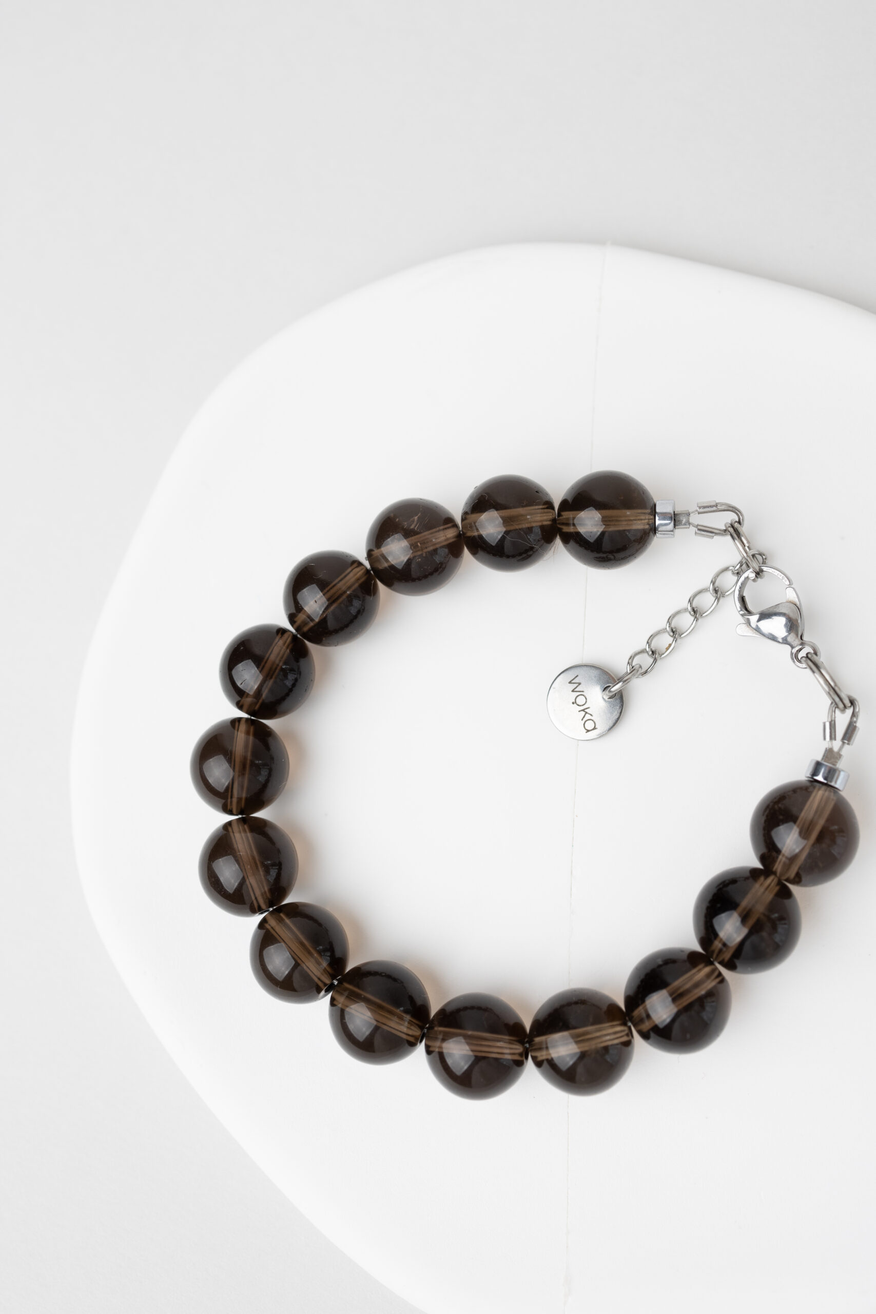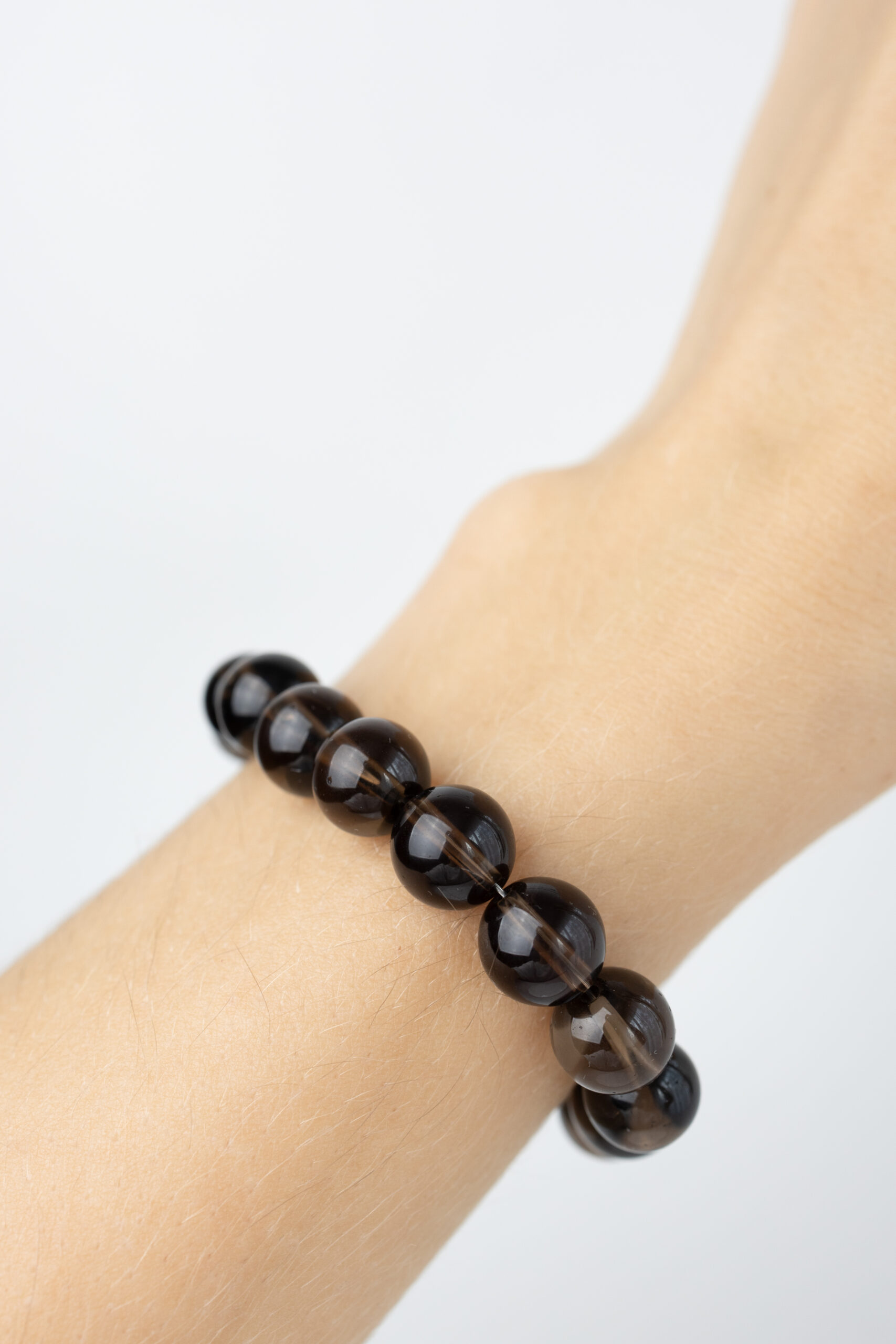 Bransoletka z dużych, naturalnych kulek dymnego kwarcu o głębokim, półprzezroczystym odcieniu. Jej wyrazisty, a jednocześnie stonowany charakter sprawia, że doskonale pasuje zarówno do codziennych stylizacji, jak i bardziej eleganckich zestawów