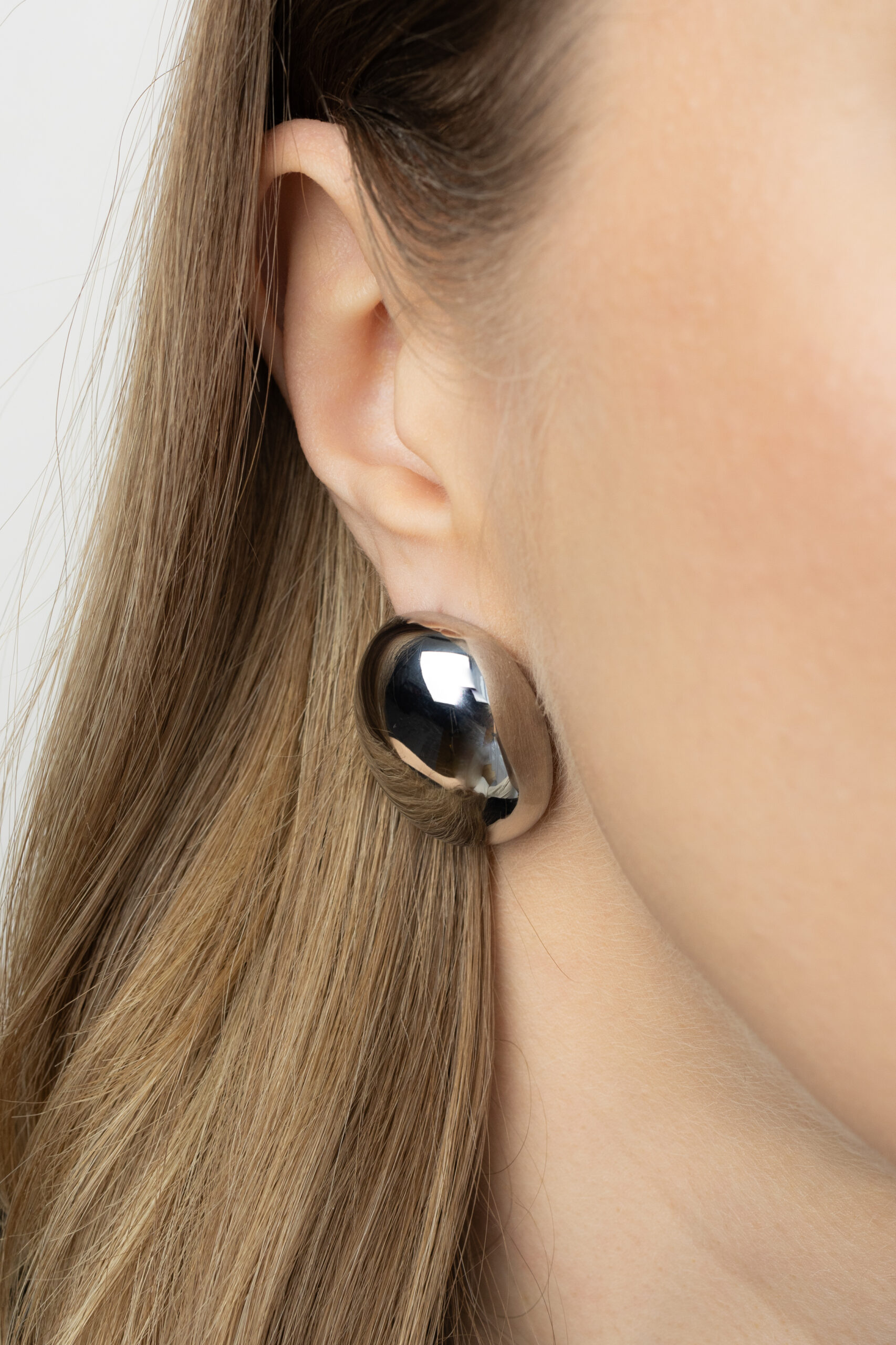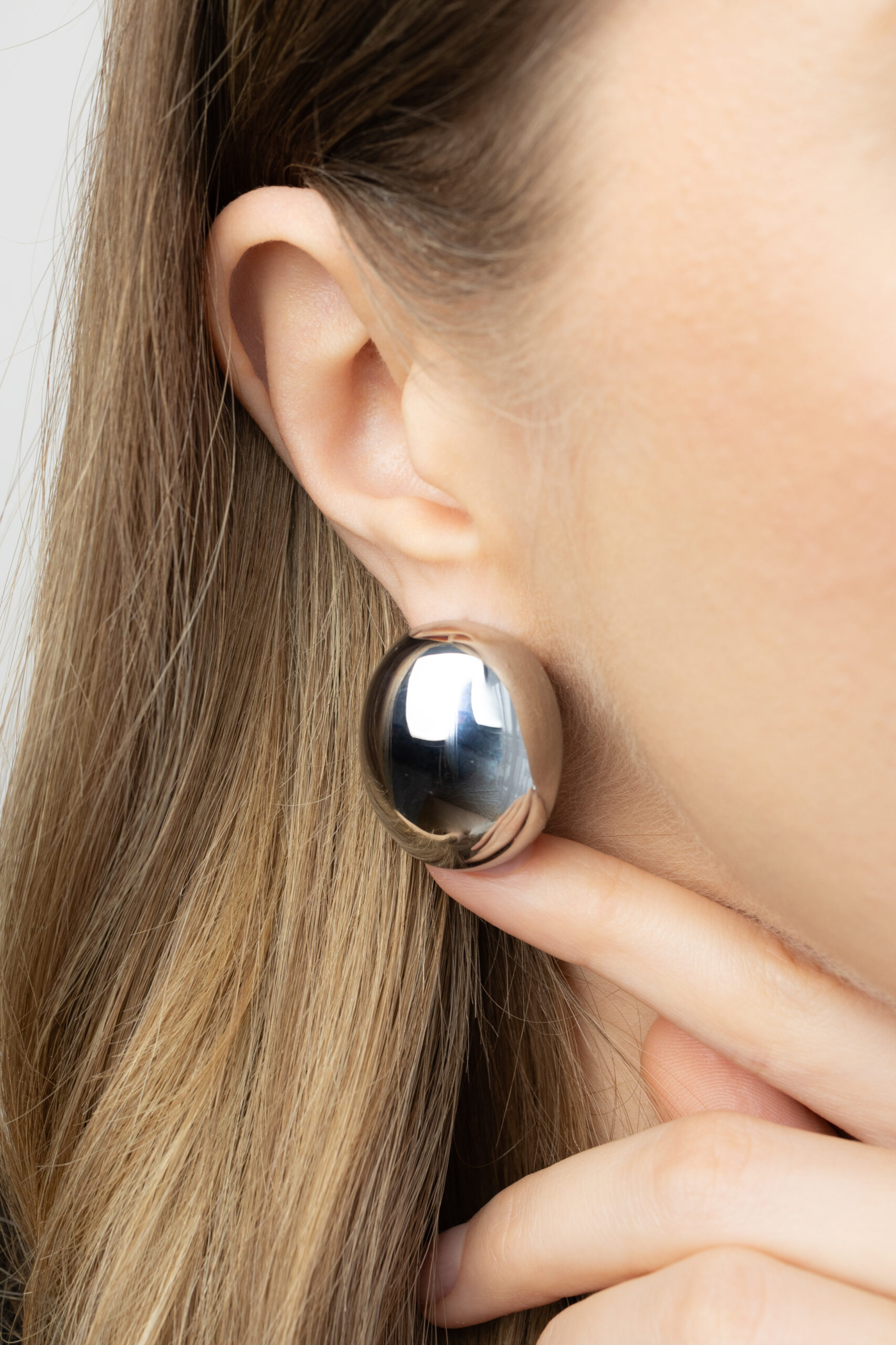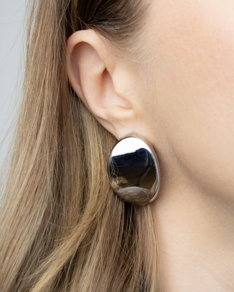 Minimalistyczne kolczyki ze stali chirurgicznej o gładkiej, zaokrąglonej formie i lustrzanym wykończeniu, w bazowym stylu, który łatwo łączy się z inną biżuterią WOKA.