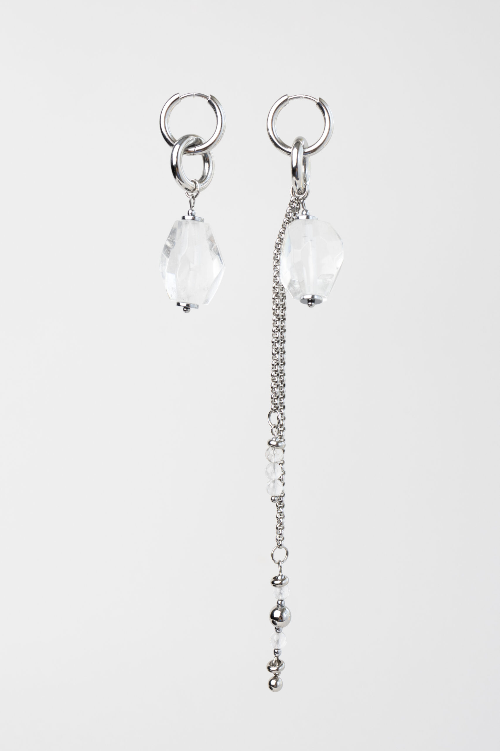 Kolczyki można nosić na wiele sposobów — jako asymetryczny duet, pełną parę lub pojedynczą mono kolczyk. Zdejmowane elementy pozwalają tworzyć różne wariacje w zależności od nastroju lub okazji.
