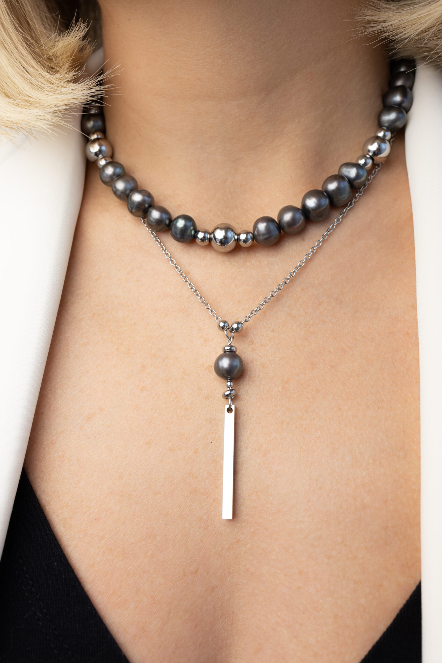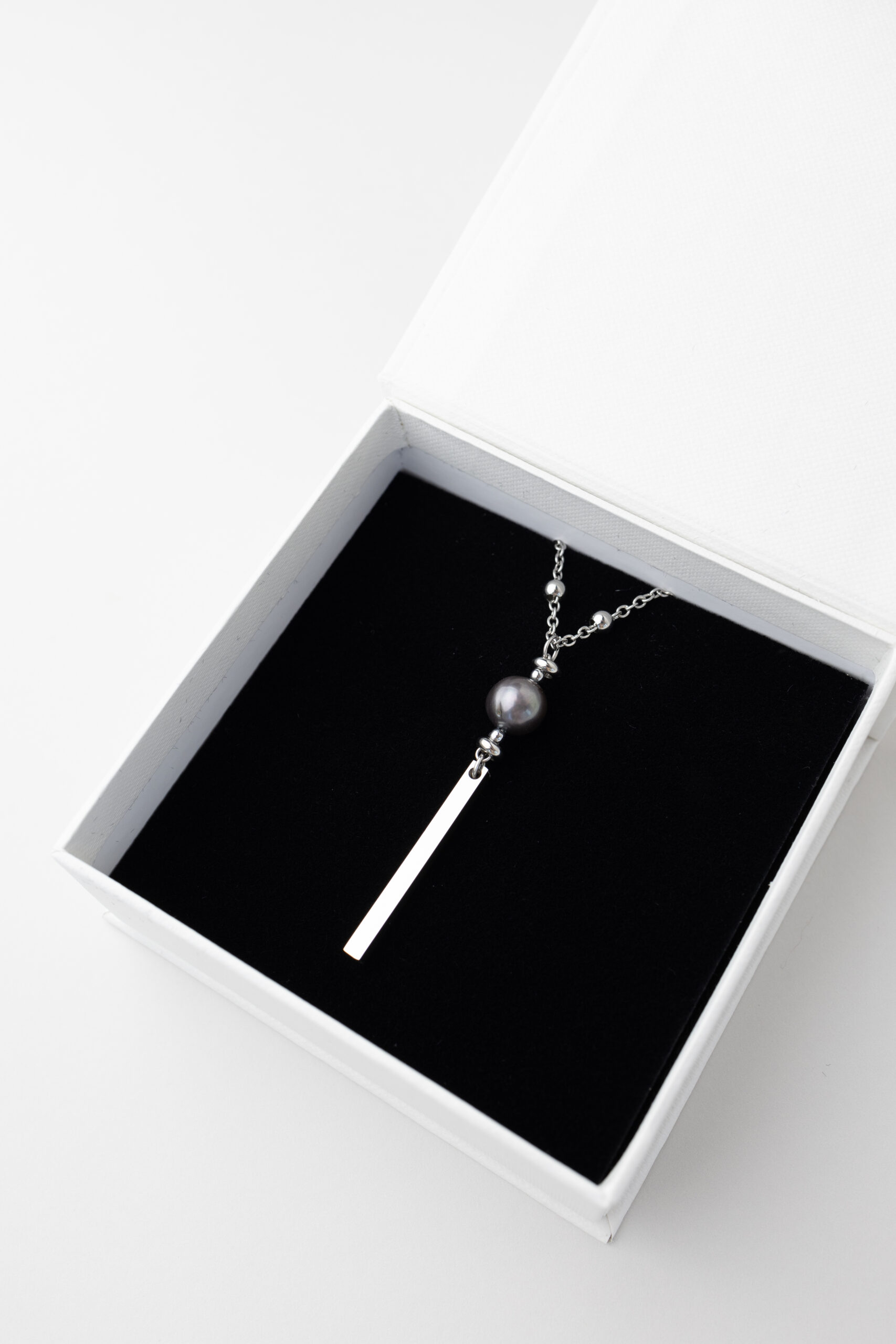 Naszyjnik Eclipse łączy pojedynczą ciemną perłę o głębokim odcieniu z chłodnym blaskiem stali nierdzewnej. Smukły i minimalistyczny design sprawia, że świetnie sprawdza się zarówno jako samodzielna ozdoba, jak i w zestawie z inną biżuterią WOKA. Subtelnie podkreśla indywidualny styl, zachowując równowagę między elegancją a prostotą.