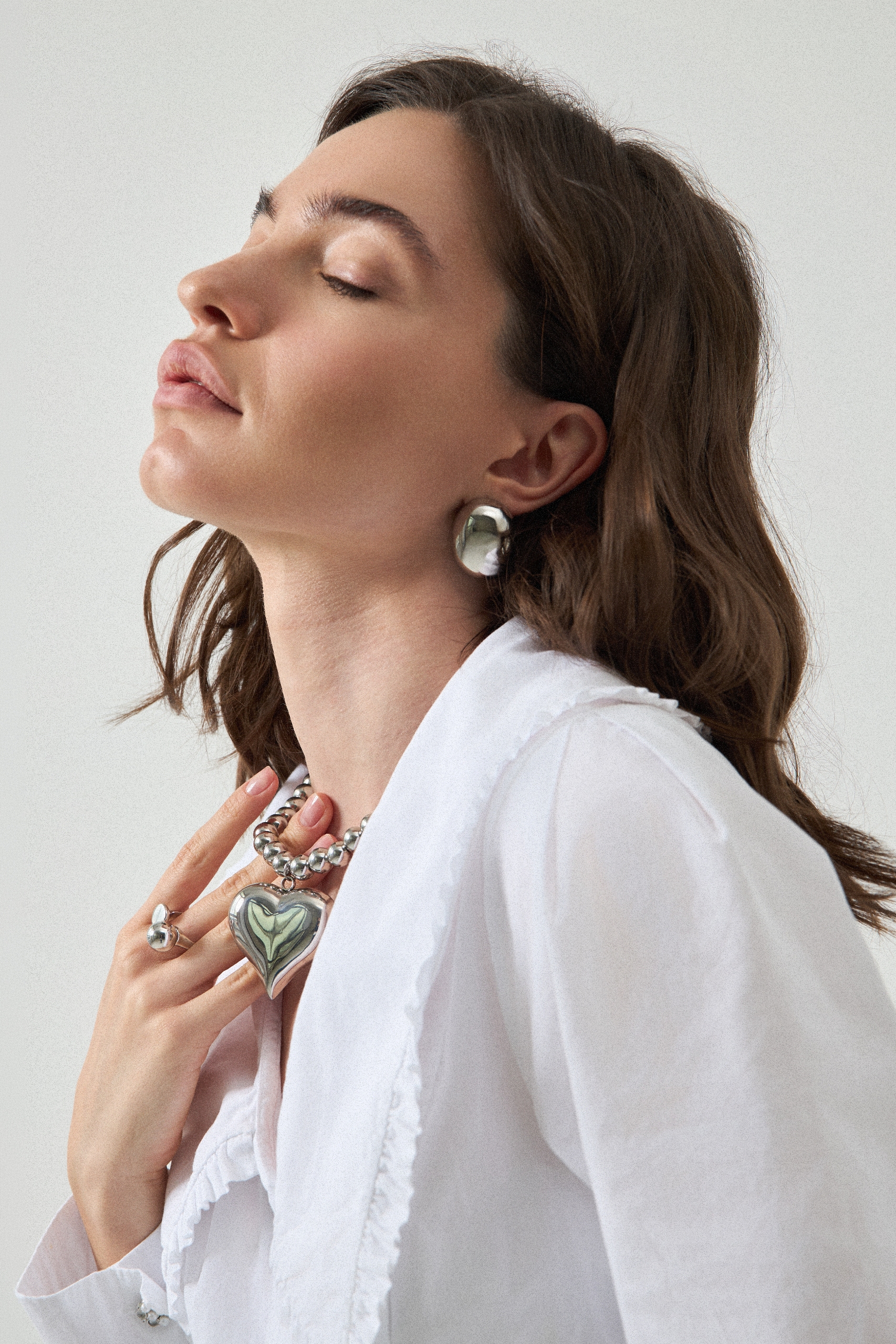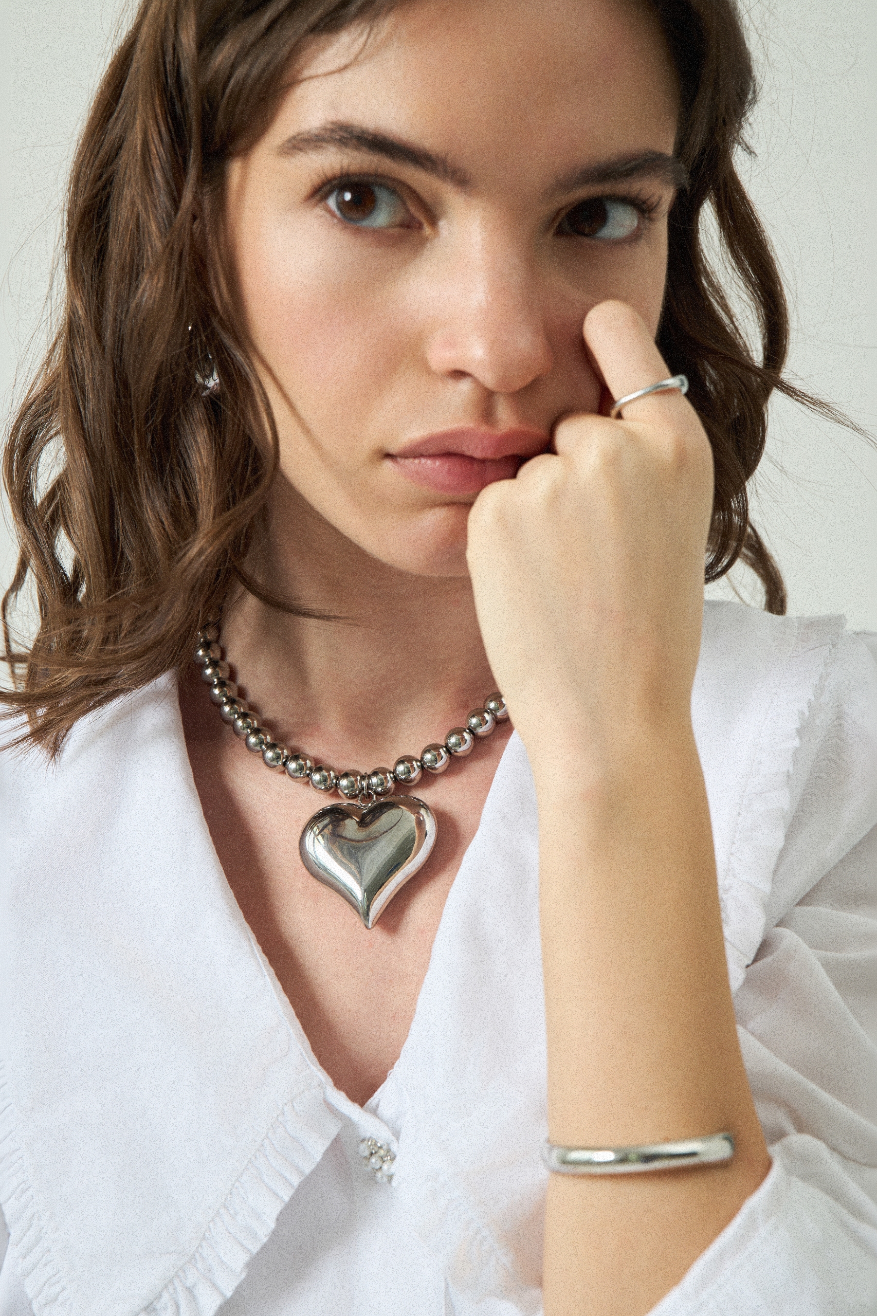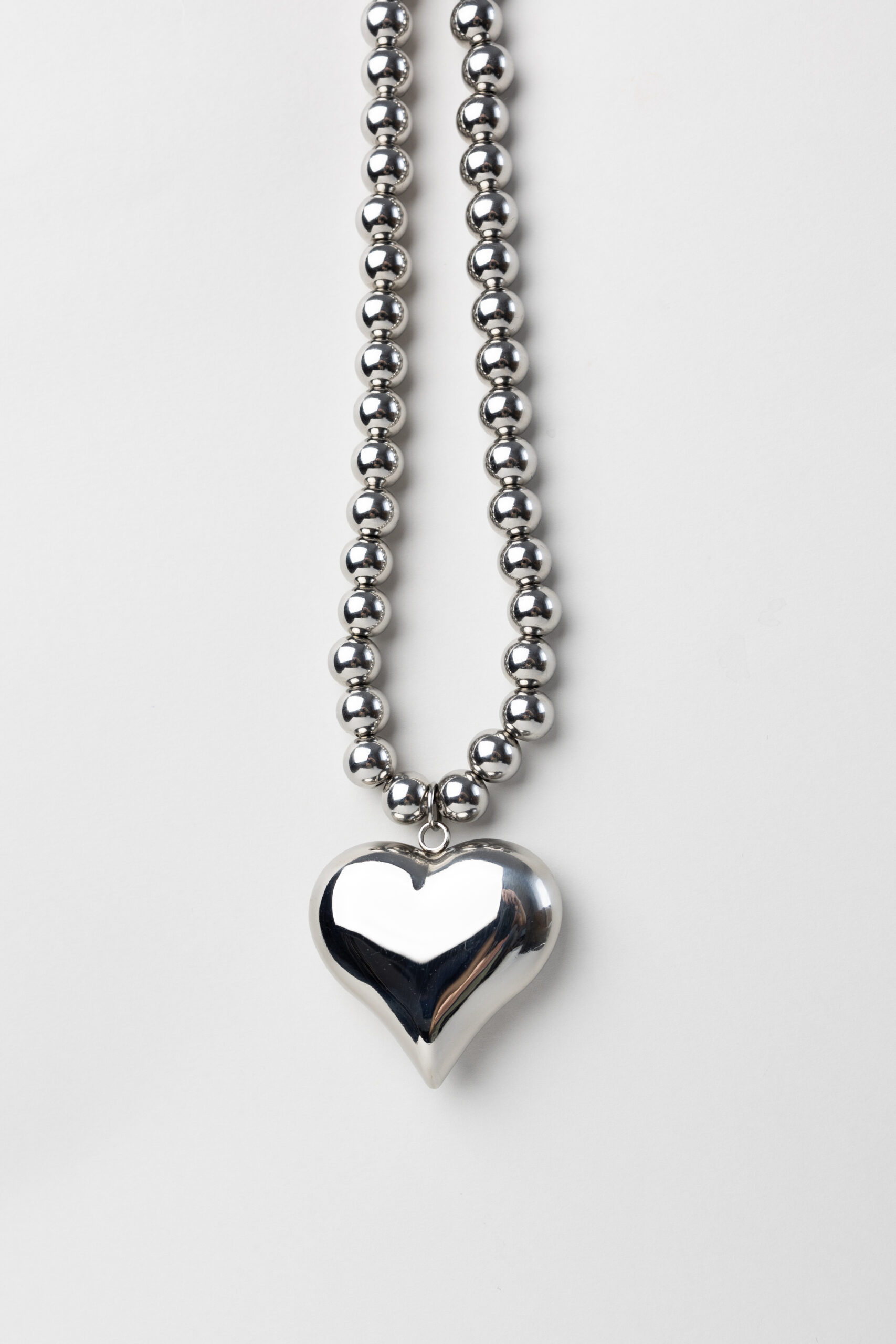 Wisiorek wykonany jest z wysokiej jakości stali o gładkiej, lustrzanie wypolerowanej powierzchni, która pięknie odbija światło i nadaje całości nowoczesny, minimalistyczny charakter. Duży kształt serca sprawia, że biżuteria staje się mocnym akcentem stylizacji, a jednocześnie pozostaje uniwersalna i łatwo łączy się zarówno z codziennymi, jak i bardziej eleganckimi outfitami.